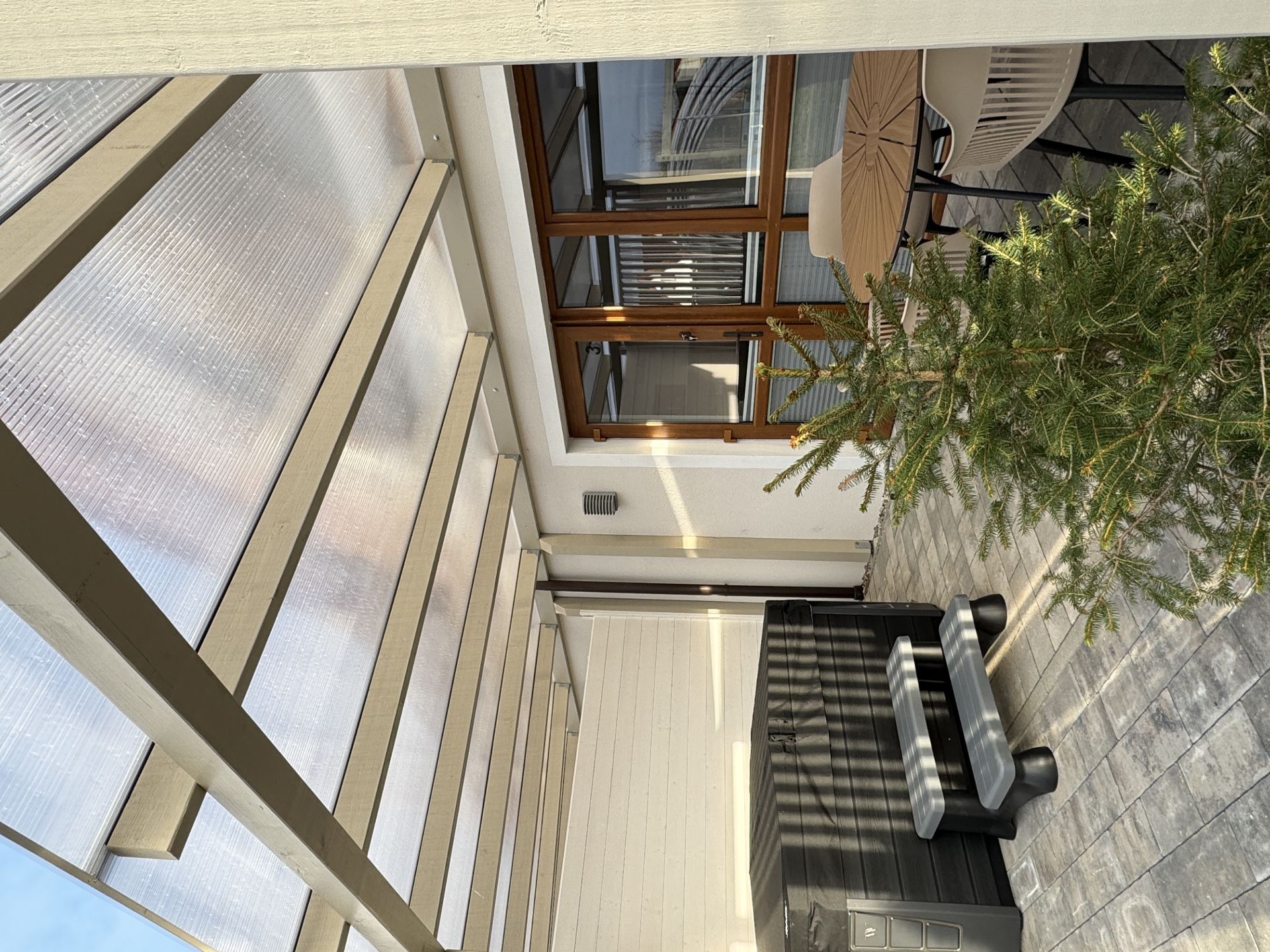 Idealnym rozwiązaniem na upalne dni jest taras wyposażony w nowoczene meble wypoczynkowe. Drewniana zabudowa tarasowa z żaluzjowymi ekranami zapewni Państwu prywatność.