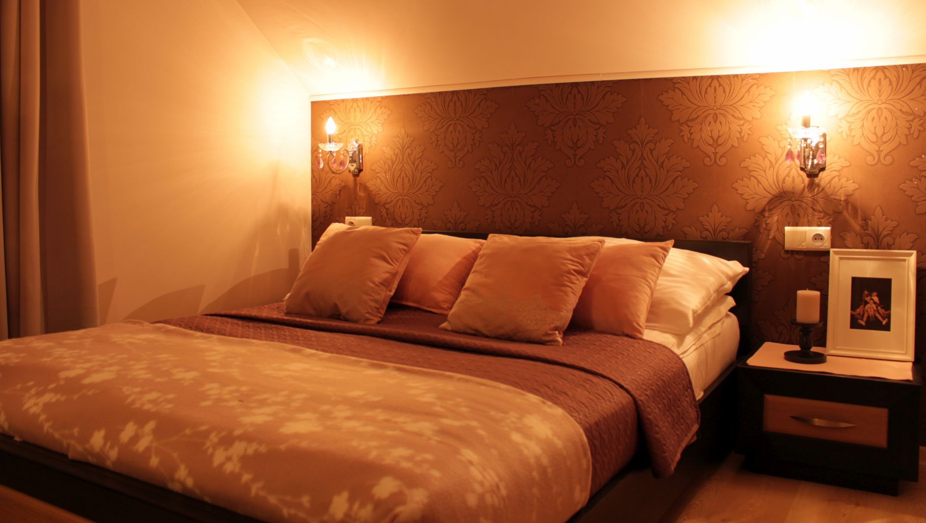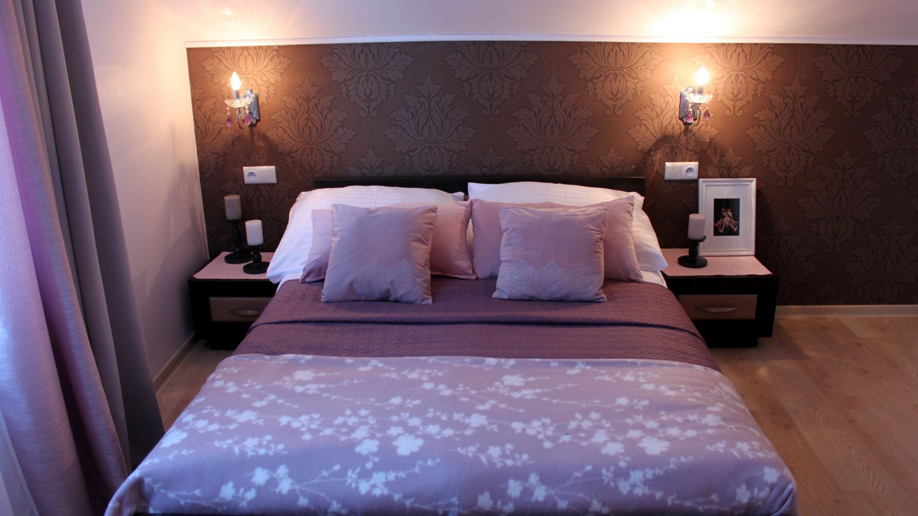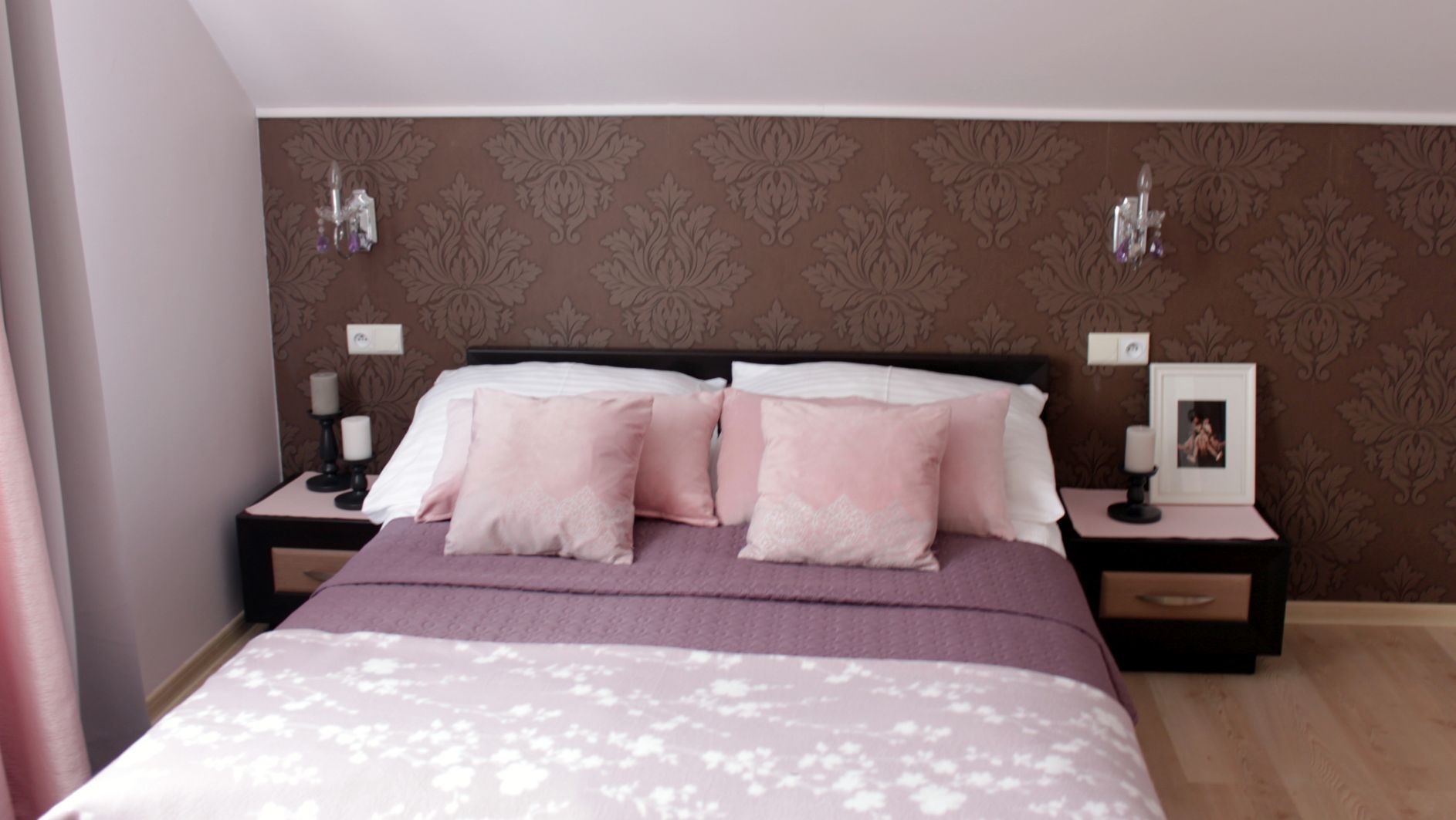 sypialnia: łóżko małżeńskie 140cm, stoliki nocne, lampki nocne; szafa),