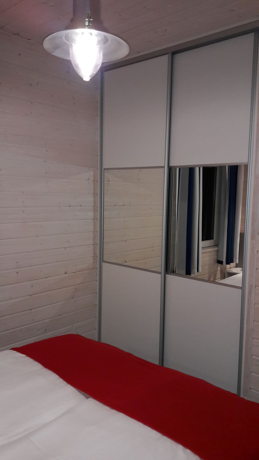 Sypialnia I: łóżko podwójne 140cm z materacem 24cm wysokim, szafa wnękowa, szafki nocne, lampki nocne.