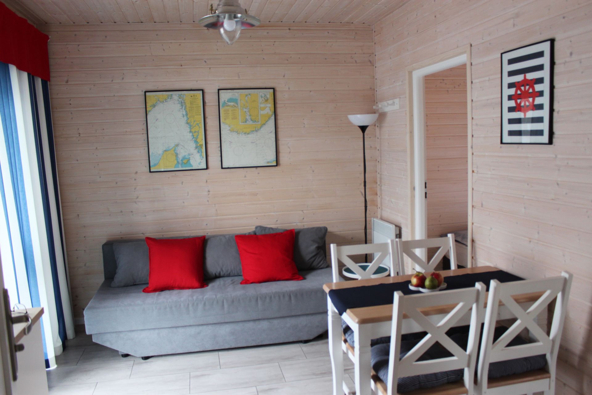 Pokój dzienny: kanapa rozkładana, TV, stolik kawowy; Jadalnia stół i 4 krzesła