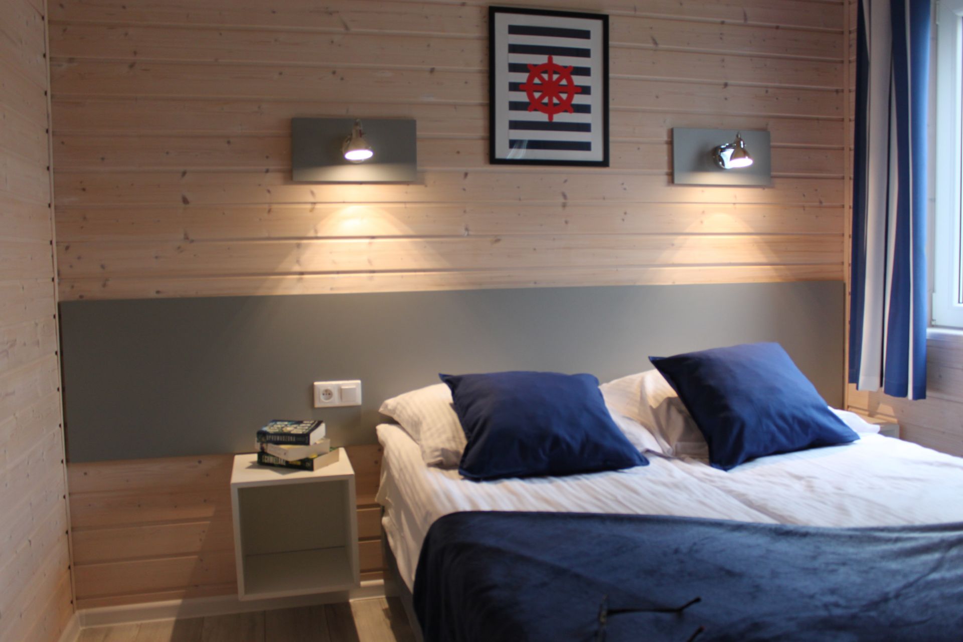 Sypialnia II: dwa pojedyńcze łóżka 80cm z materacem 24 cm, komoda, lampki nocne