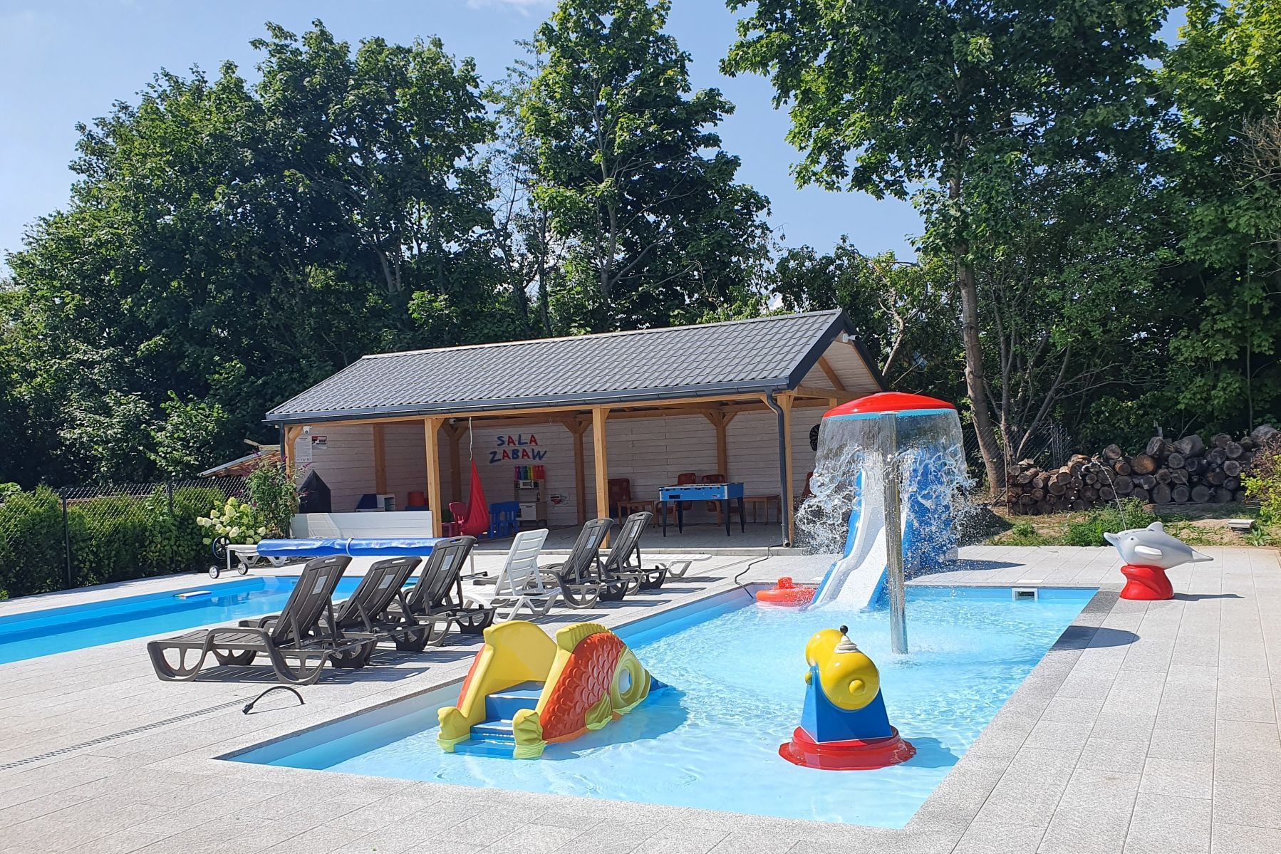 Na terenie Ośrodka Basen z podgrzewaną wodą; brodzik dla dzieci z podgrzewaną wodą z atrakcjami wodnymi; plac zabaw z atestem bezpieczeństwa, bujak, huśtawki, trampolina