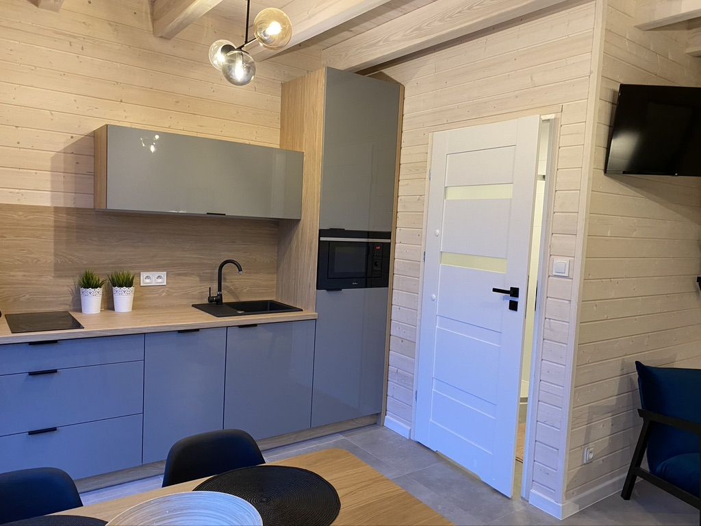 Aneks kuchenny: zmywarka; płyta ceramiczna, lodówka, pralka, zlewozmywak, mikrofalówka, czajnik elektryczny,komplet naczyń