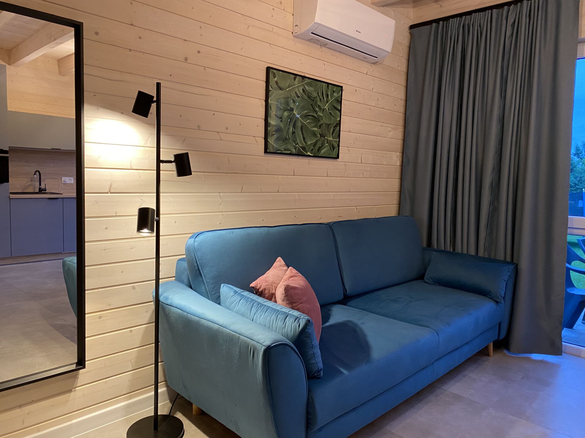Pokój dzienny: kanapa rozkładana, TV, stolik kawowy; Jadalnia stół i 4 krzesła