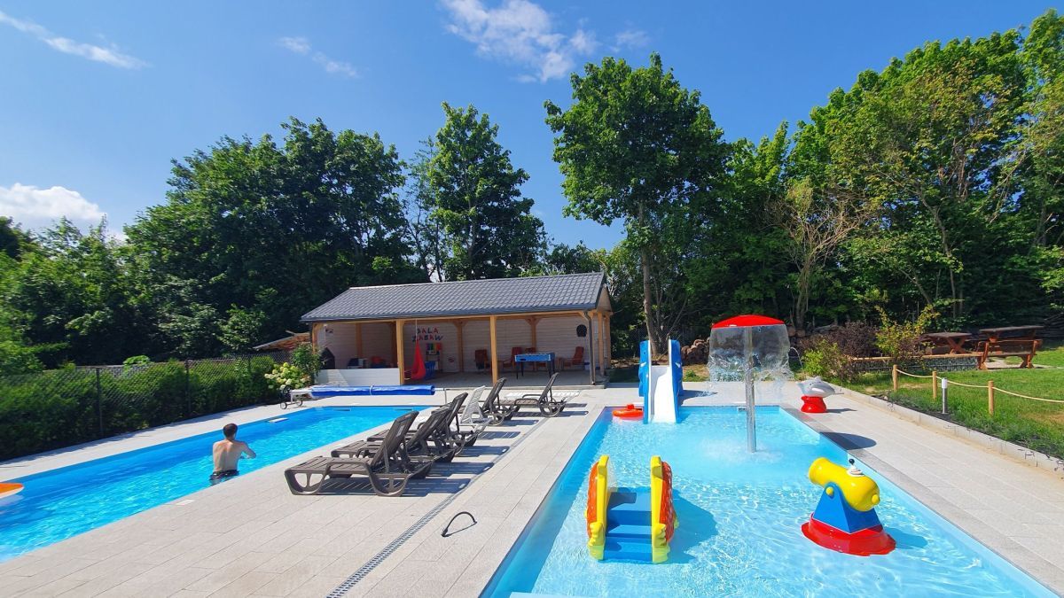 Na terenie Ośrodka Basen z podgrzewaną wodą; brodzik dla dzieci z podgrzewaną wodą z atrakcjami wodnymi; plac zabaw z atestem bezpieczeństwa, bujak, huśtawki, trampolina