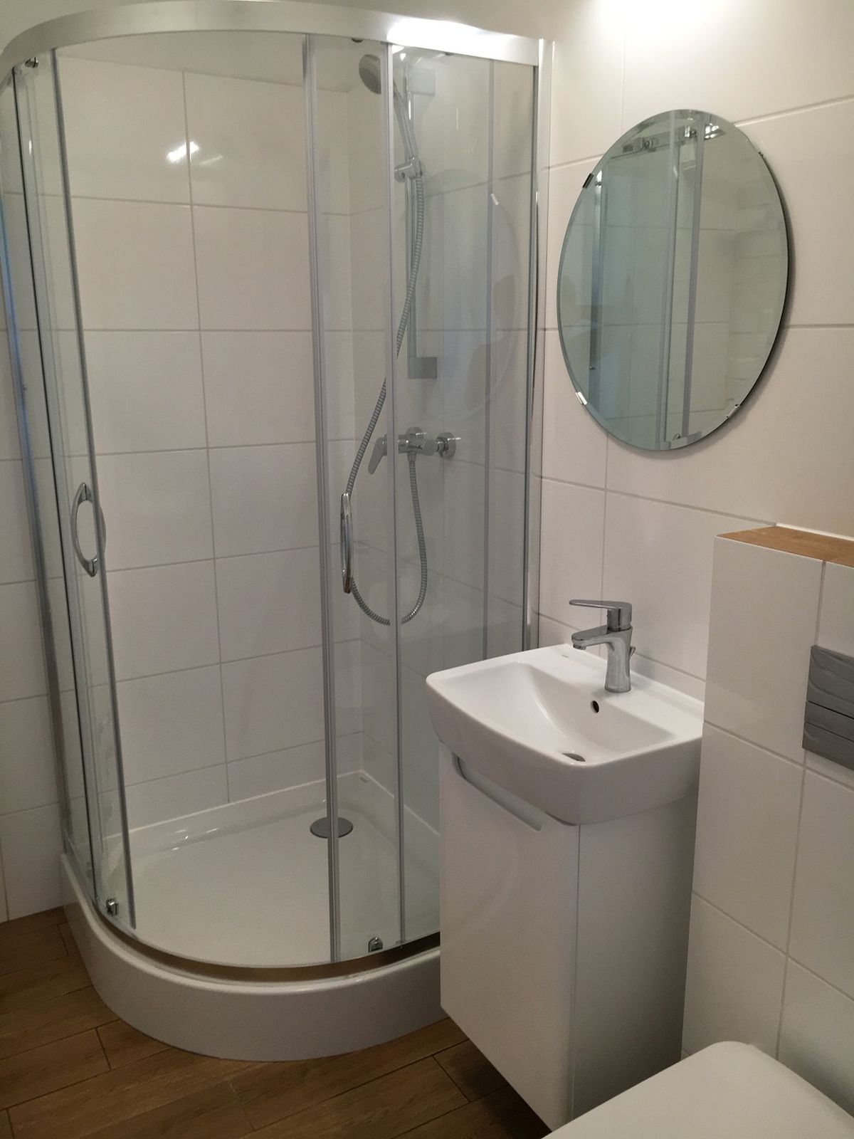 Łazienka znajduje się na parterze wyposażona we wszystkie niezbędne sprzęty i urządzenia.