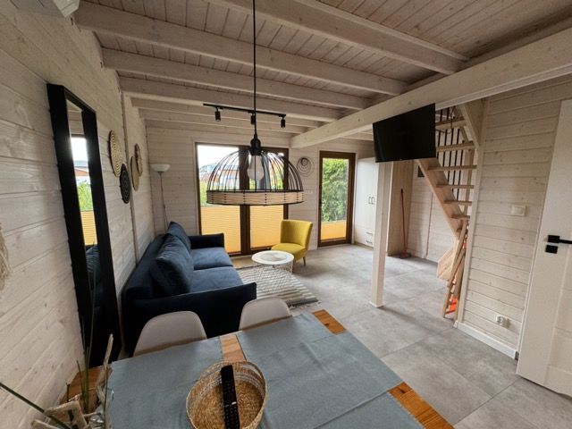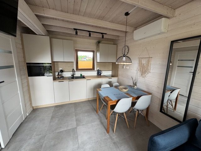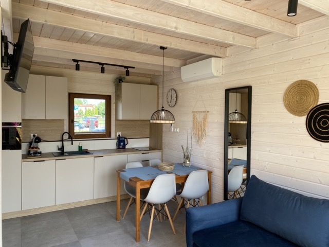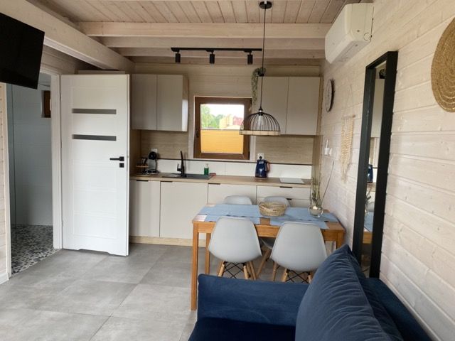 Domek po przebudowie i wymianie mebli i sprzętów 2024/2025r.; powiększona powierzchnia parteru; większa, przebudowana łazienka, aneks kuchenny i część dzienna.