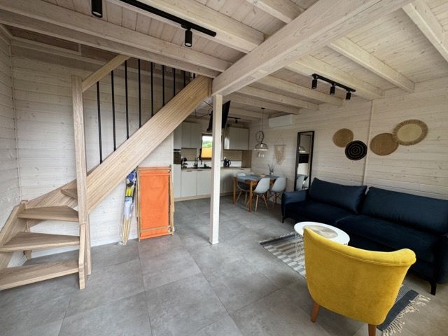DOMEK STANDARD, dwupoziomowy klimatyzowany; domek o pow. 55m2 + zadaszony taras 7,5m2, przeznaczone dla 4-6 osób.